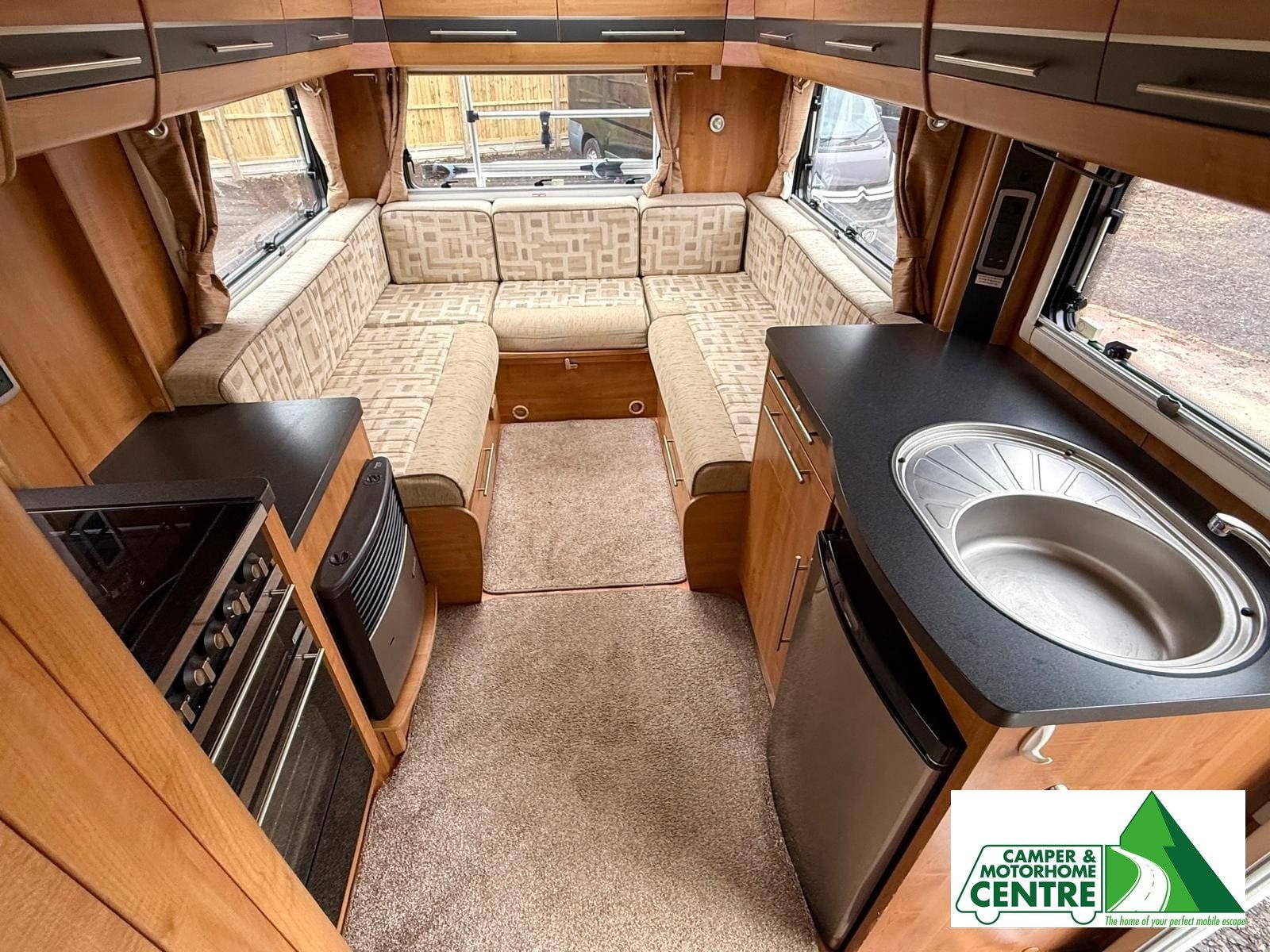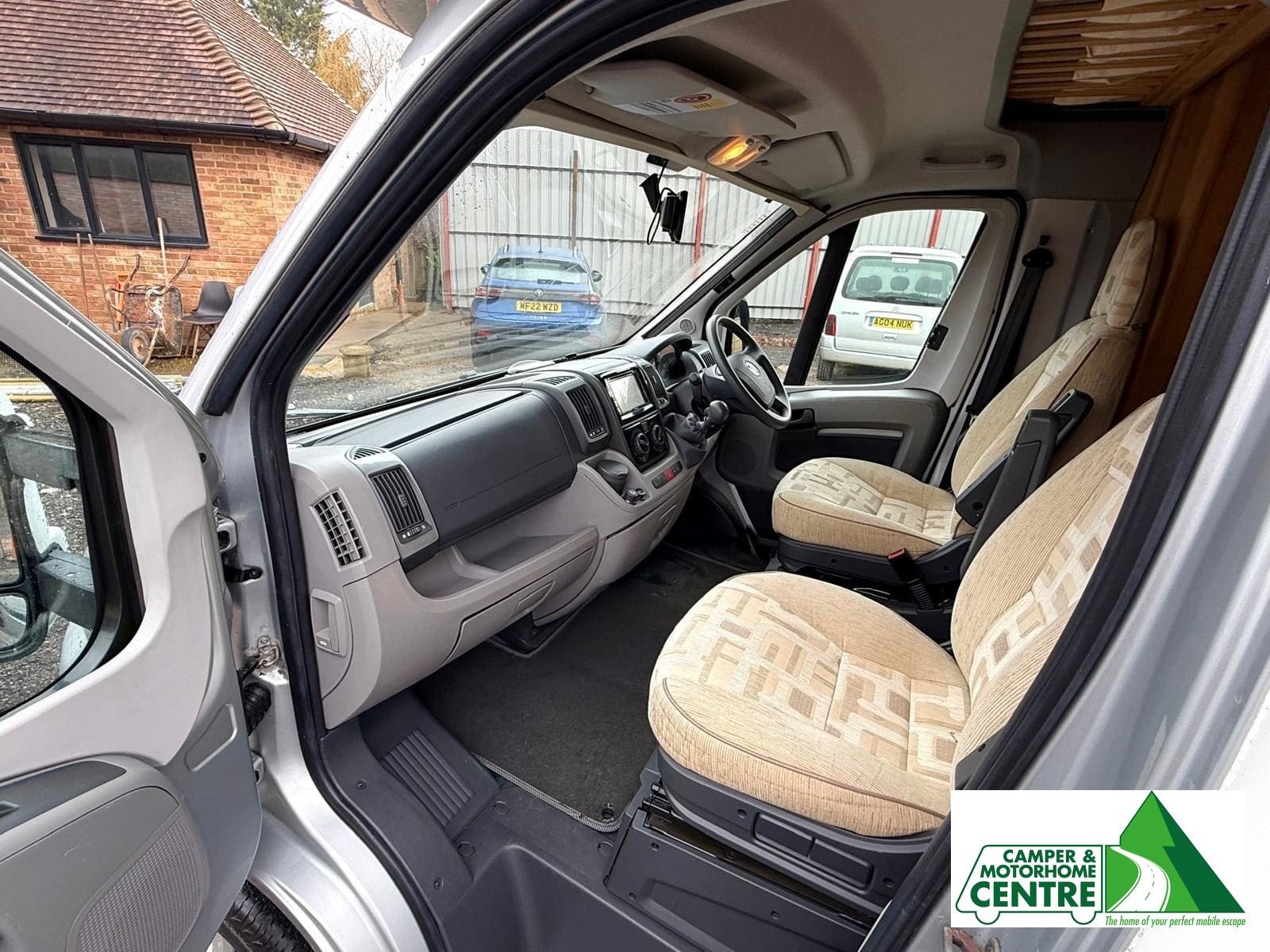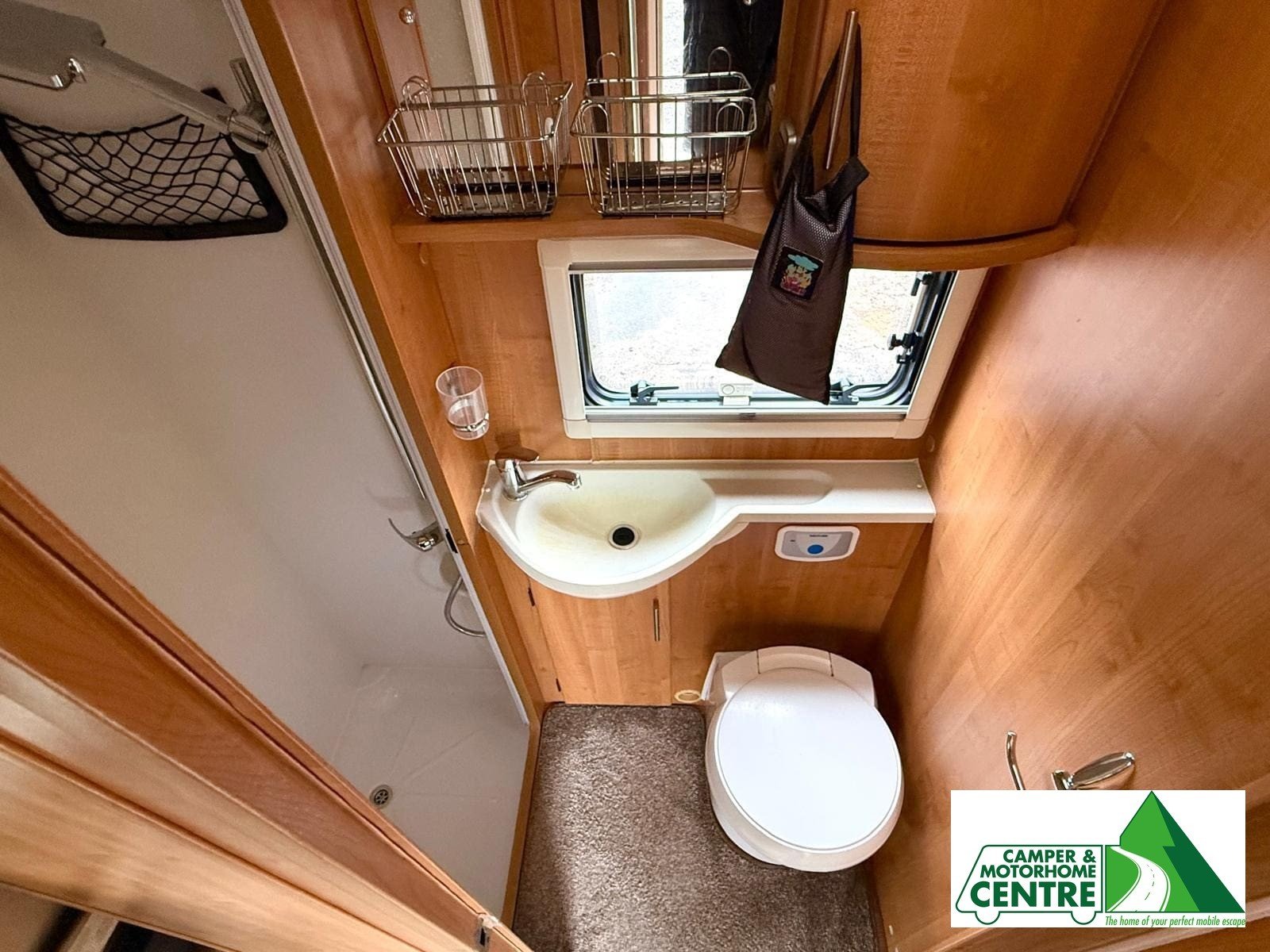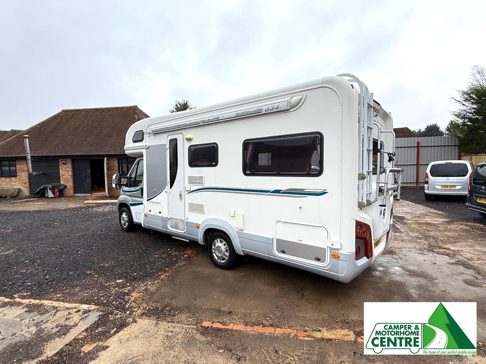 2012 Auto-Trail Apache 634, 4 berth, 2 belted seats, over-cab bed, awning, bike rack, solar panel, reversing camera. Fiat Ducato 2.3, 6 speed, 130 bhp, air con, cruise control, alarm. Uprated to 3850 kg for bigger payload, need C1 licence. If you are looking for a spacious motorhome with lots of storage this might be the one for you. At the front you will find an over-cab bed with ladder. Next a large wardrobe and opposing bathroom with separate shower. the kitchen is presented on both sides with washing up area and fridge, cooker opposite with loads of storage lockers and cupboards. At the rear is a spacious u-lounge with free standing table that turns into a large double bed. -