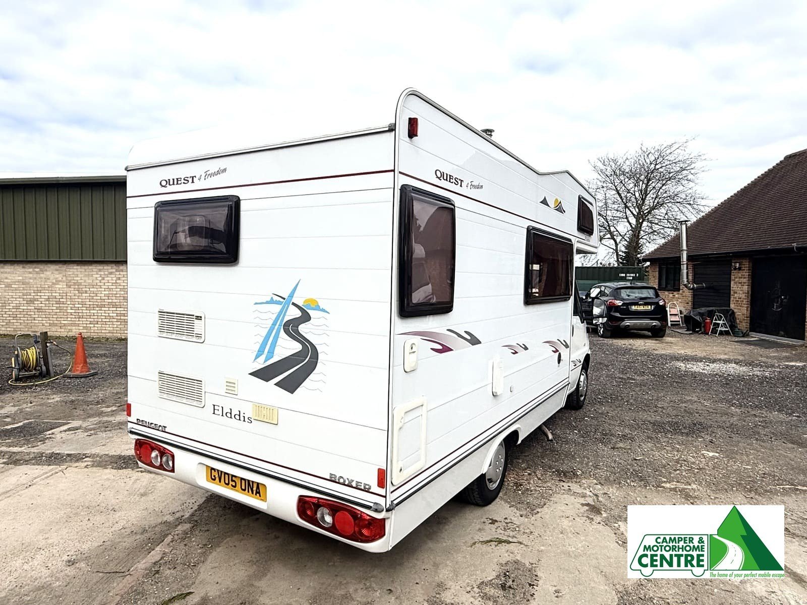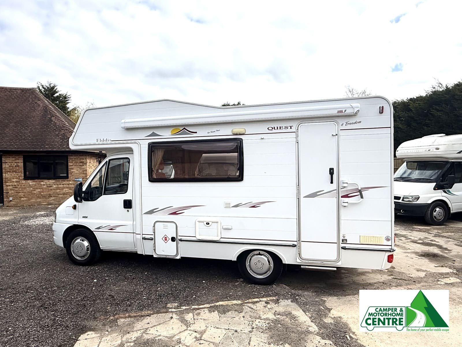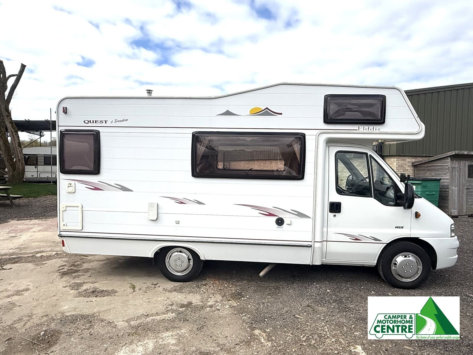 2005 Elddis Autoquest 300, 5 berth, belted seats, over-cab bed, awning and one owner from new! 2.0 HDI, 36185 miles, full service history. Here we have for sale a cherished one owner from new Elddis Autoquest 300 in immaculate condition. This is probably one of best kept examples out there! At the rear you will find a kitchen with oven, hob, grill, sink, 3 way fridge and high and low level cupboards. Next is a well appointed washroom with shower, hand washing bowl and cassette toilet with adjacent cupboard. In the middle is a dinette area and side facing bench that converts into a large double or medium double and side beds. At the front is double over cab bed. -